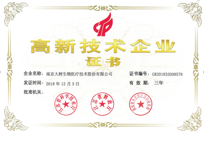 公司技術(shù)力量雄厚擁有一批高科技創(chuàng)新人才,自主研發(fā)了多款醫(yī)療器械產(chǎn)品,其中主打產(chǎn)品全自動干式生化分析儀及配套多項測試卡已獲得國家多項專利。公司已獲得由江蘇省科學(xué)技術(shù)廳、江蘇省財政廳、國家稅務(wù)總局江蘇省稅務(wù)局聯(lián)合頒發(fā)的“高新技術(shù)企業(yè)”證書,由此正式邁入國家高新技術(shù)企業(yè)行列。