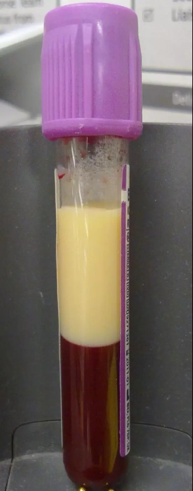 常有人將血脂與甘油三酯視為一體,實(shí)際上,甘油三酯(TG)僅是血脂的一種,血脂還包括其他物質(zhì)如膽固醇等。當(dāng)病人的血甘油三酯特別高(顆粒大、密度低的脂蛋白過多)時(shí),血液會(huì)呈乳白色,將這種血靜置一段時(shí)間后,血的表面會(huì)形成厚厚的一層奶油樣物質(zhì),這便是化驗(yàn)單上報(bào)告的所謂的“甘油三酯”。