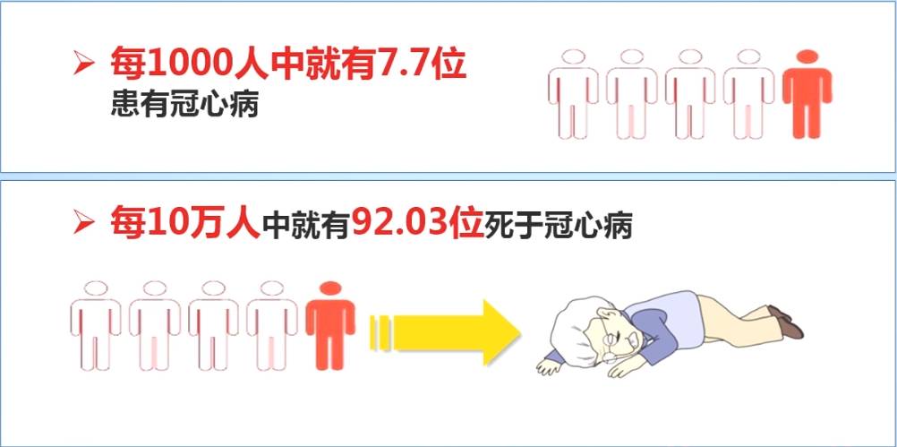 冠心病是當(dāng)今世界上導(dǎo)致死亡的主要病癥之一。由于臨床表現(xiàn)復(fù)雜,病情變化突然,常常使人聽而生畏。 正確認(rèn)識(shí)冠心病,堅(jiān)持科學(xué)的生活方式,及時(shí)發(fā)現(xiàn)、認(rèn)真治療是非常重要的。 目前,我國心血管疾病病人有2.9億,其中心肌梗死病人有250萬。